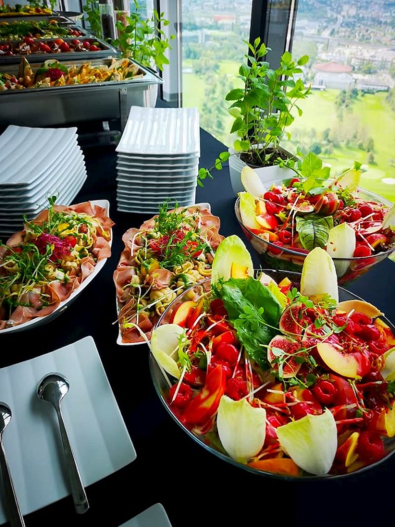 In unserem Buffetangebot werden Speisen ausgewählt, bei denen der längere Warmhalteprozess einkalkuliert wird, damit sie dadurch nicht an Qualität verlieren.